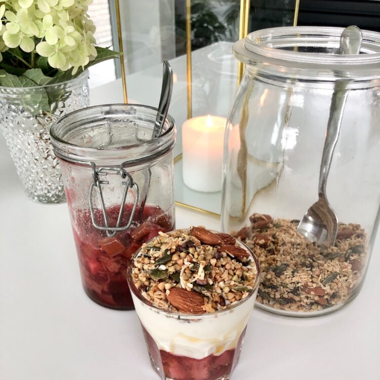 For ikke så længe siden lavede jeg en portion rabarberkompot som jeg spiste til min morgenmad sammen med soyayoghurt og et drys granola. Det blev hurtig spist og jeg har siden har lyst til at lave en portion mere. Denne gang blev det til en portion jordbær og rabarberkompot som også smager noget så dejligt. Jeg elsker kombinationen af jordbær…